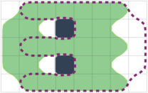 已知变形虫初始占据了哪些格子,它想移动到占据着给出的另一些格子(虚线内)的状态。求任意一种方案。