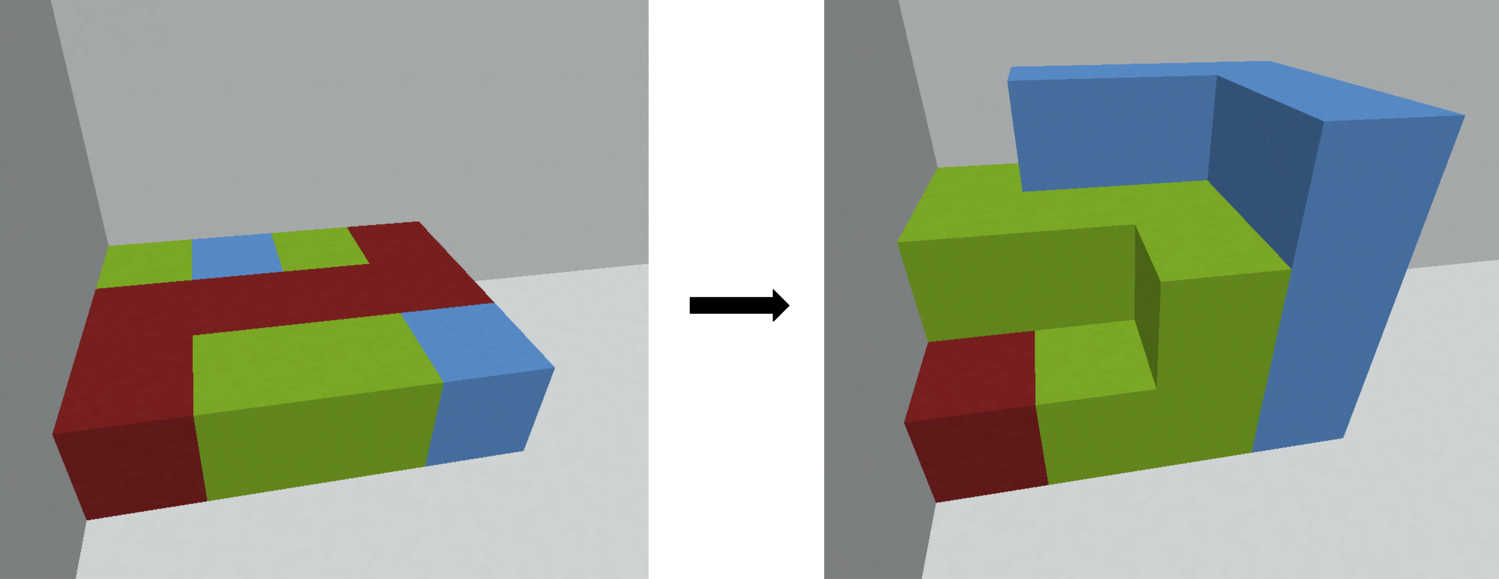 换句话说,对于每一对颜色为 $c$ 的立方体,应当可以只经过颜色为 $c$ 并且两两有公共面的立方体,从一个走到另一个。