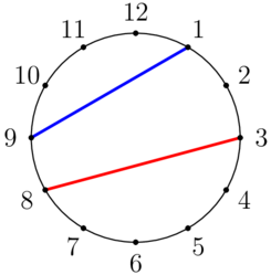 有一个标有 $1$ 到 $12$ 的时钟,如下图所示,数字按顺时针顺序排列。 ![](https://cdn.luogu.com.cn/upload/vjudge_pic/CF1971C/dc1b9b8cdcc08927ff93e17ee0e104c325e2c451.png) 在这个例子中,$(a,b,c,d) = (2,9,10,6)$,两根线段相交。 Alice 和 Bob 各自有四个互不相同且不超过 $12$ 的整数 $a$、$b$、$c$、$d$。Alice 用一根红色的线连接 $a$ 和 $b$,Bob 用一根蓝色的线连接 $c$ 和 $d$。请判断这两根线段是否相交?(线段为直线段。)