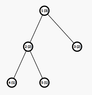 In the first test case, the tree is as follows. The number in brackets denotes the weight of the vertex: