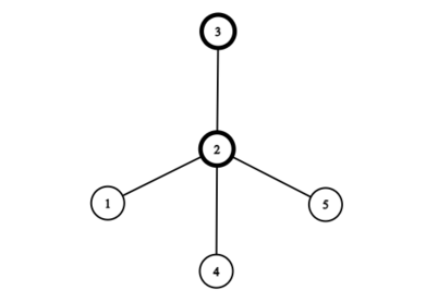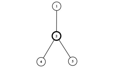 在第二个测试用例中,原树是一条包含五个节点的链。可以证明经过一次洗牌后,最大叶子节点数为 $3$。我们可以先选择节点 $2$ 作为根节点,这样节点 $1$ 会变成叶子节点。然后在右侧选择节点 $4$,这样节点 $3$ 和 $5$ 也会变成叶子节点。