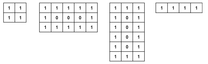 A beautiful binary matrix is a matrix that has ones on its edges and zeros inside.