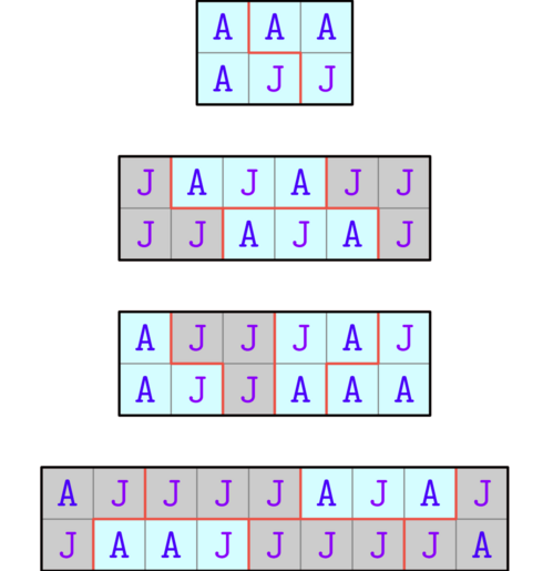Álvaro and José are the only candidates running for the presidency of Tepito, a rectangular grid of $ 2 $ rows and $ n $ columns, where each cell represents a house. It is guaranteed that $ n $ is a multiple of $ 3 $ .