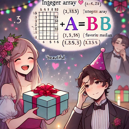 图片由 ChatGPT 4o 生成。A-Ming 的生日快到了,他的朋友 A-May 决定送他一个整数数组作为礼物。A-Ming 有两个最喜欢的数字 $a$ 和 $b$,他认为一个数组是“美丽的”当且仅当它的平均数恰好为 $a$,中位数恰好为 $b$。请你帮助 A-May 找到一个美丽的数组,这样她的礼物才能让 A-Ming 印象深刻。