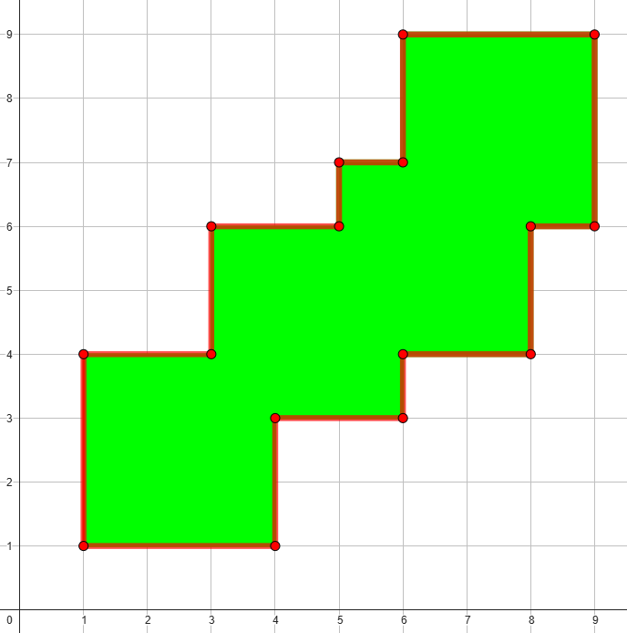 可以证明,所有操作完成后,纸上的有色区域是一个连通的整体。请你求出这个有色区域的周长。