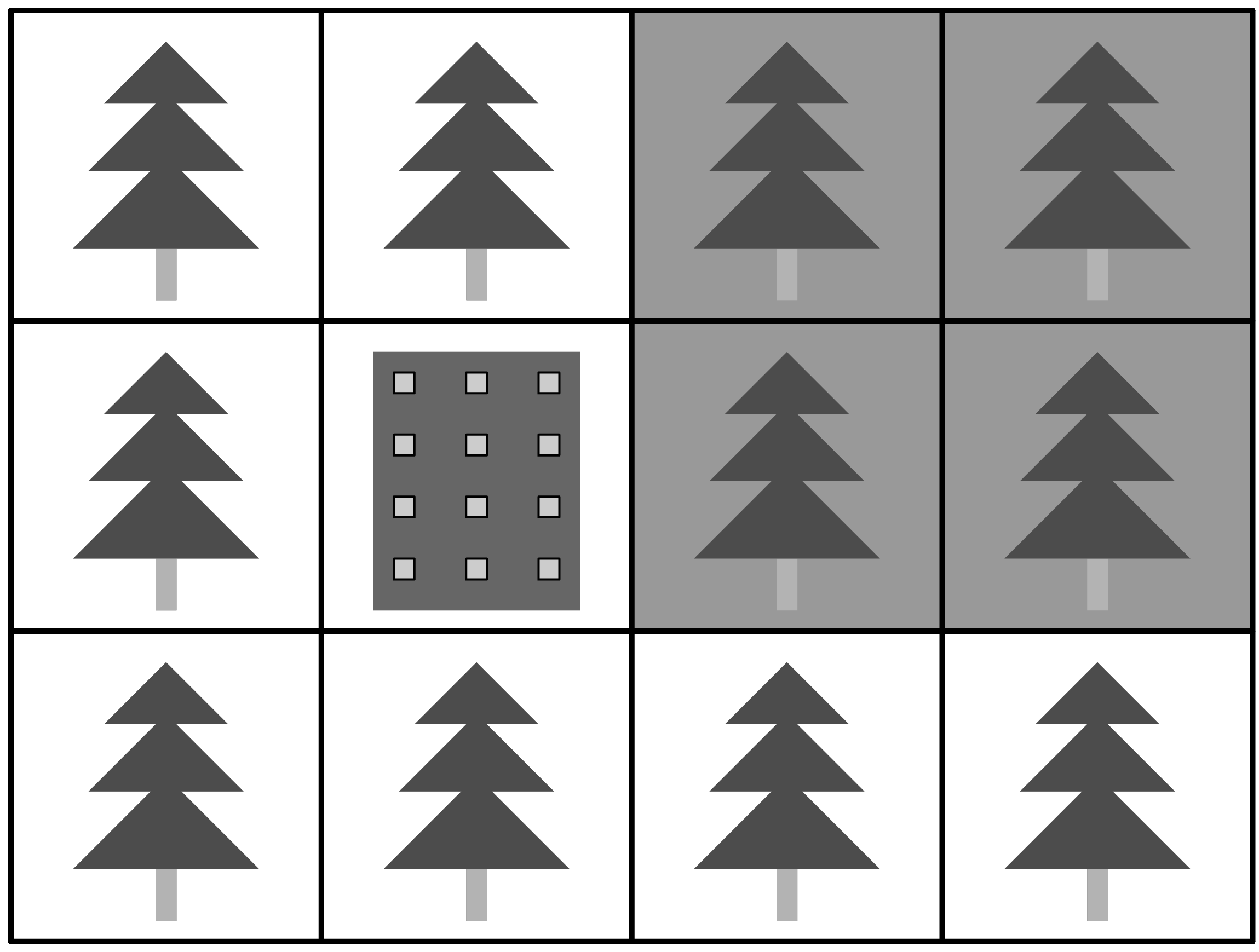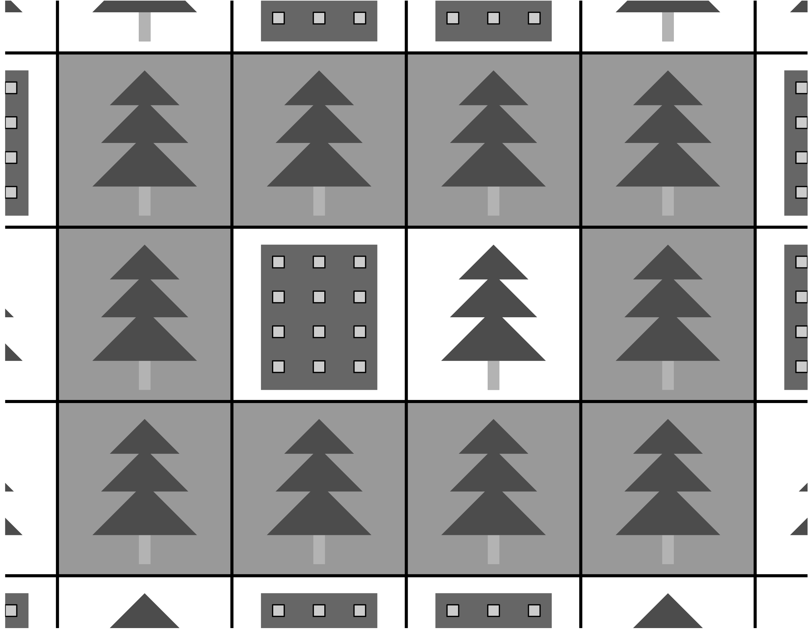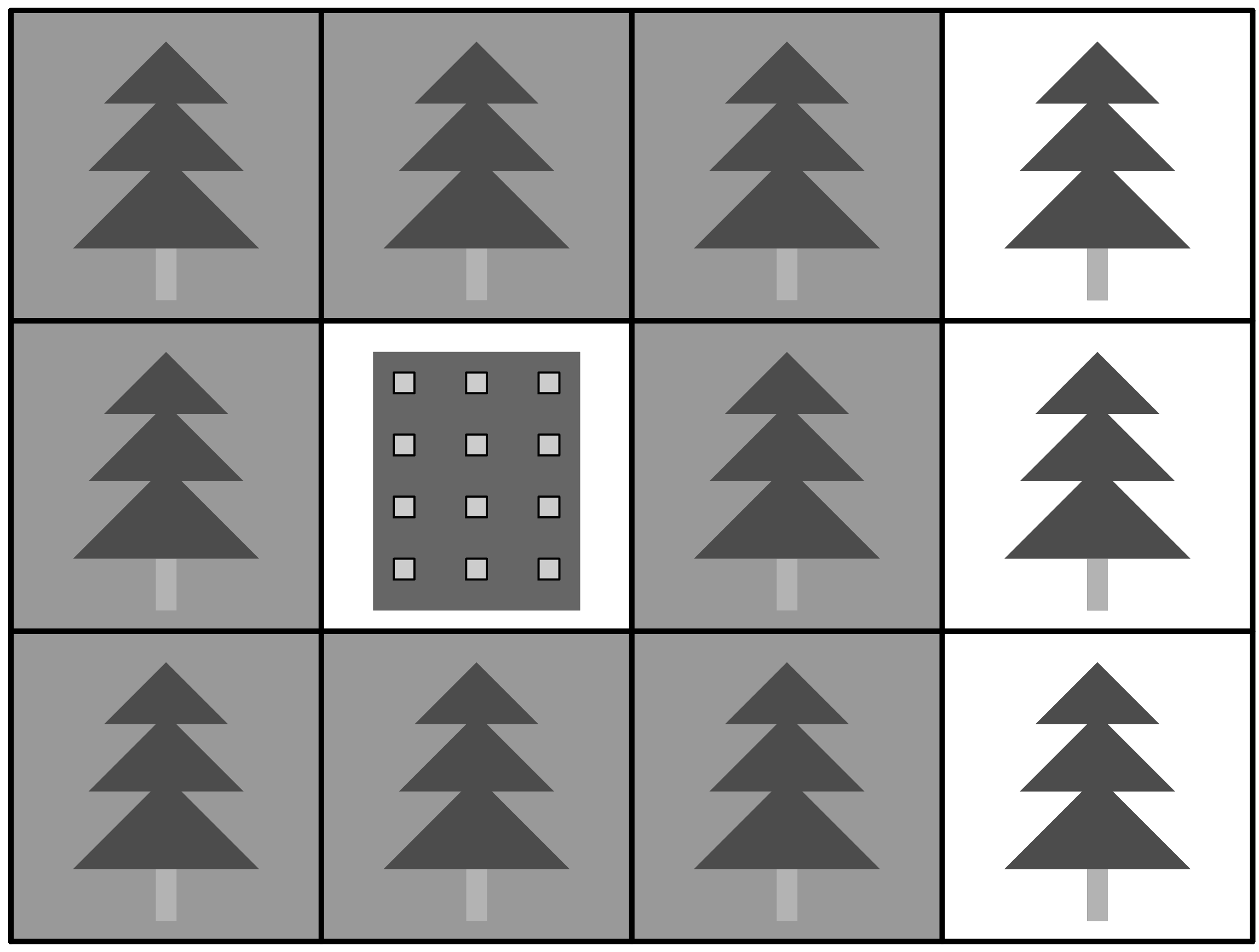 你负责规划一座新城市!该城市将用一个矩形网格表示,其中每个单元格要么是公园,要么是建筑区。