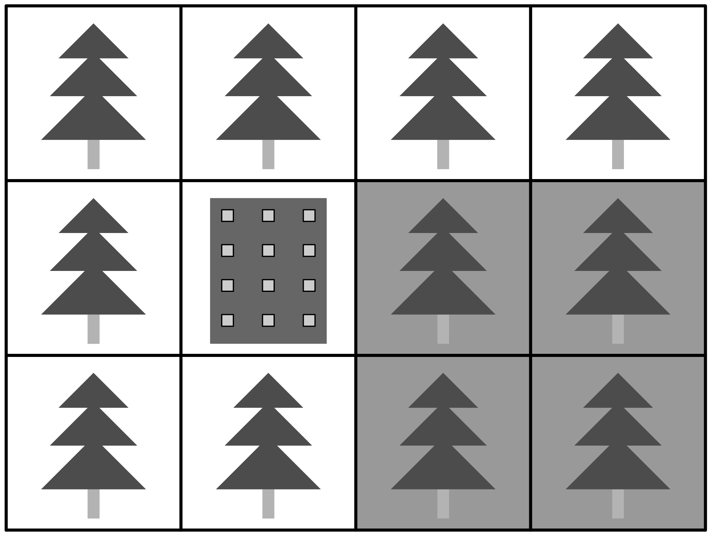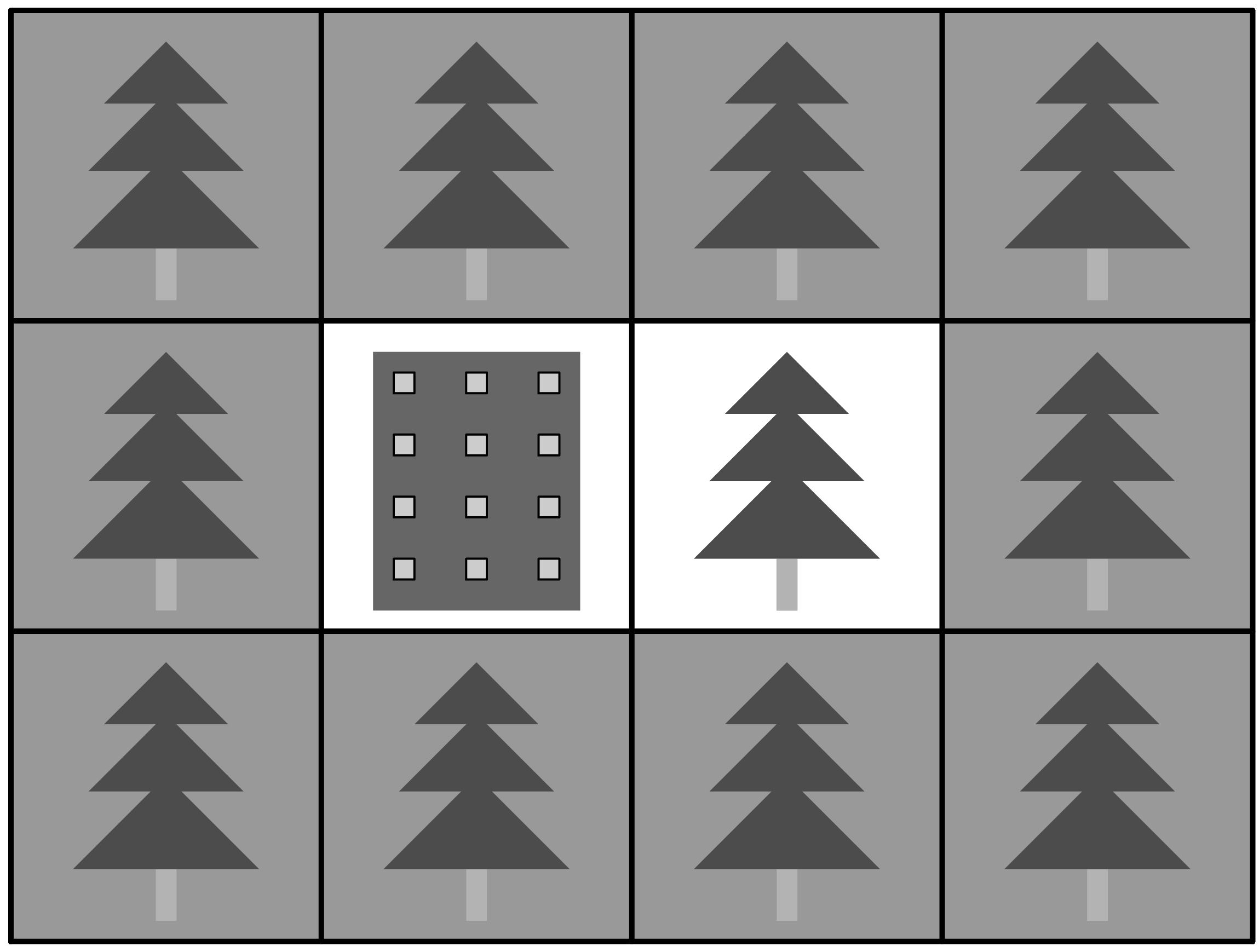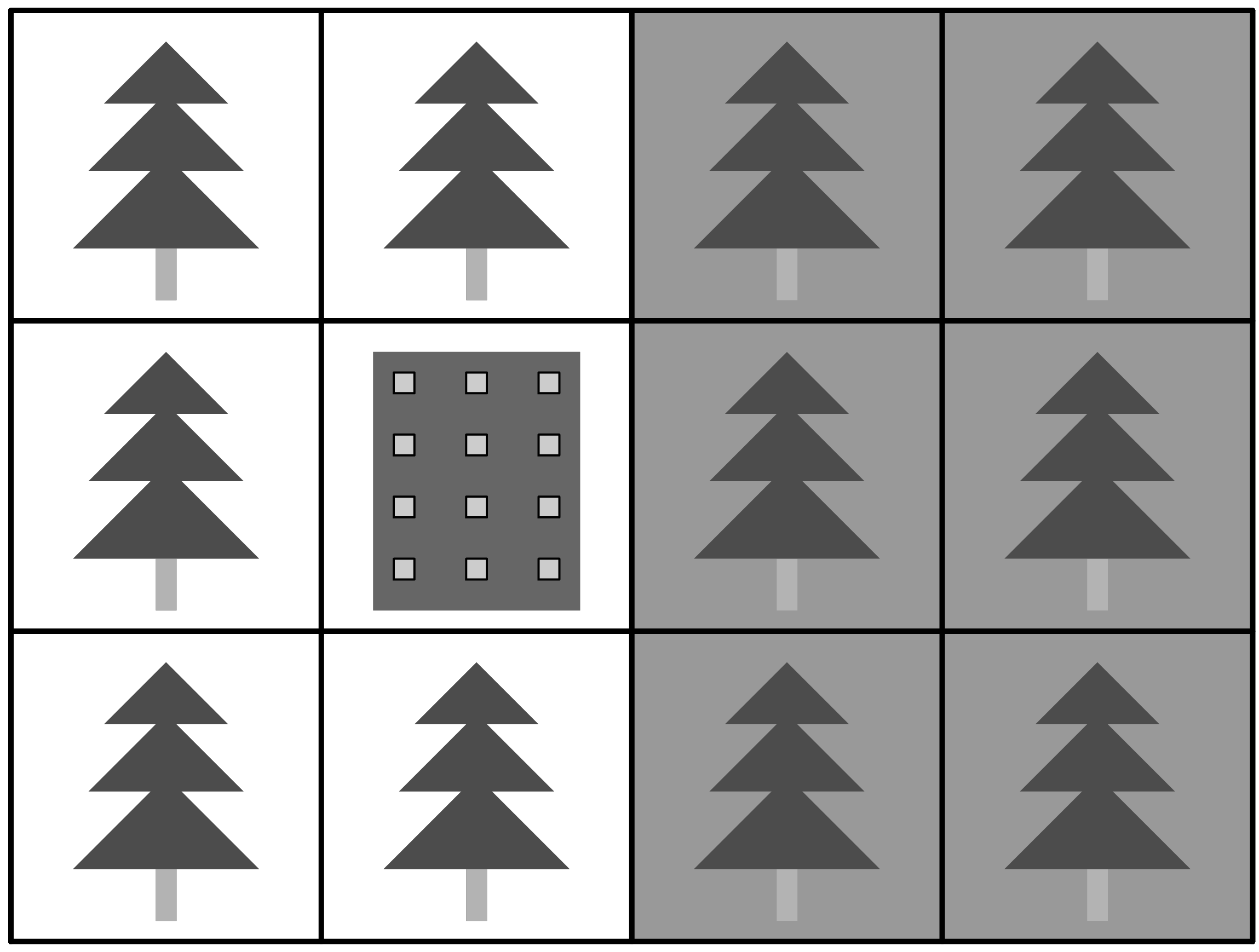 你负责规划一座新城市!该城市将用一个矩形网格表示,其中每个单元格要么是公园,要么是建筑区。