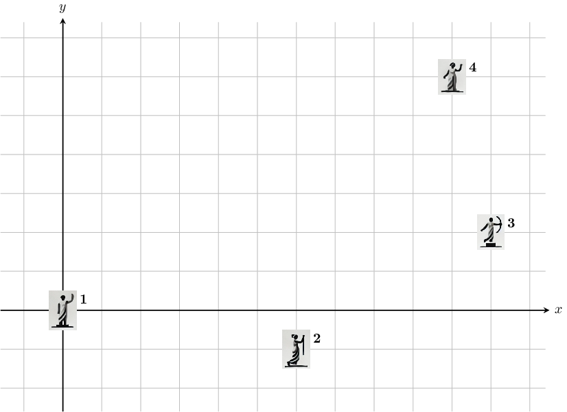 某市市长计划在城市交叉路口放置 $n$ 座雕像。城市交叉路口的坐标为所有整数坐标点 $(x, y)$。交叉路口之间的距离使用曼哈顿距离计算,定义如下: