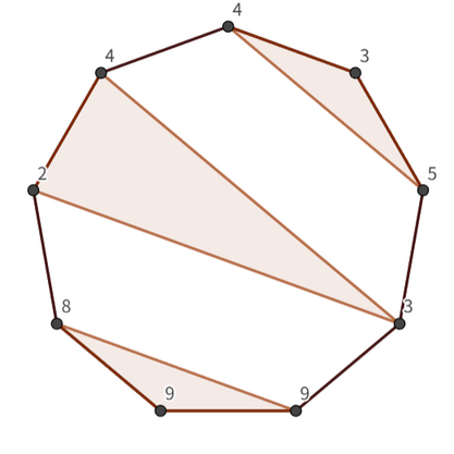 Frontman 欢迎你来到这场生存游戏的最终回合。给定一个具有 $n$ 条边的正则多边形($n \ge 3$),其顶点按顺时针顺序编号为 $1,2,\ldots,n$。每个顶点 $i$ 上被粉色士兵写有一个正整数 $a_i$。你需要基于这个正则多边形进行如下定义的游戏。