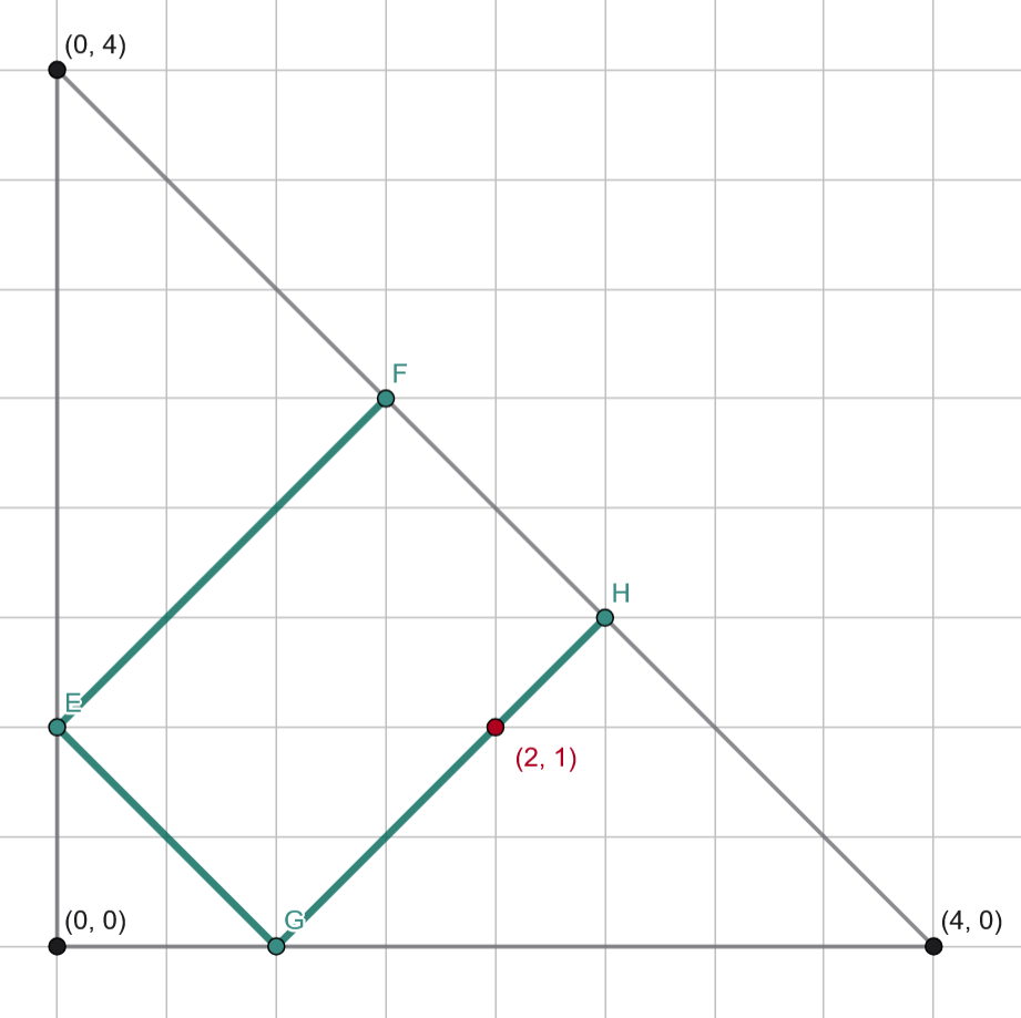 For simplicity, we will assume that the Bermuda Triangle and the airplane are on a plane, and the vertices of the triangle have coordinates $ (0, 0) $ , $ (0, n) $ , and $ (n, 0) $ . Initially, the airplane is located at the point $ (x, y) $ strictly inside the Bermuda Triangle and is moving with a velocity vector $ (v_x, v_y) $ . All instruments have failed, so the crew cannot control the airplane.