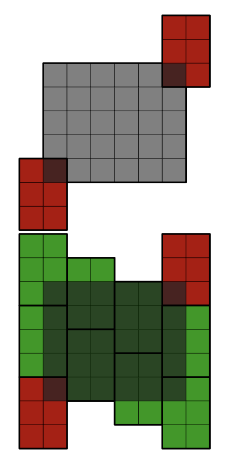 在第一个测试用例中,可以再添加 $8$ 块屋顶板,如下图所示: ![](https://cdn.luogu.com.cn/upload/vjudge_pic/CF2113B/93f36282728350193810dfbfa6e6dfdf291648d2.png) 在第二个测试用例中,不可能将屋顶完全覆盖: ![](https://cdn.luogu.com.cn/upload/vjudge_pic/CF2113B/cebcd94b71d8b7130f37fb6e9fd22f74c727960b.png) 由 ChatGPT 4.1 翻译