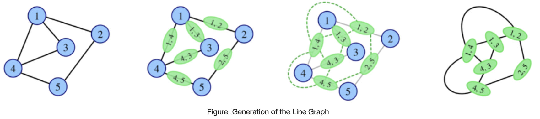 - Two vertices of $ L(G) $ are adjacent if and only if their corresponding edges share a common endpoint in $ G $ .