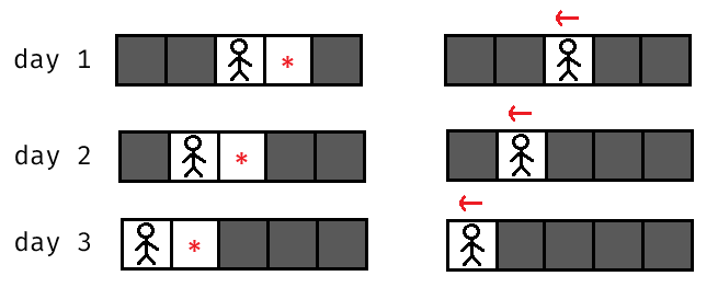 In the first test case, Mani must build a wall in cell $2$, so Hamid can escape from the left side of the grid on the first day.