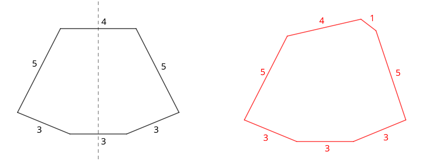 - [Symmetrical](https://en.wikipedia.org/wiki/Reflection_symmetry): there exists a line of symmetry such that when the polygon is folded along this line, the two halves coincide exactly.