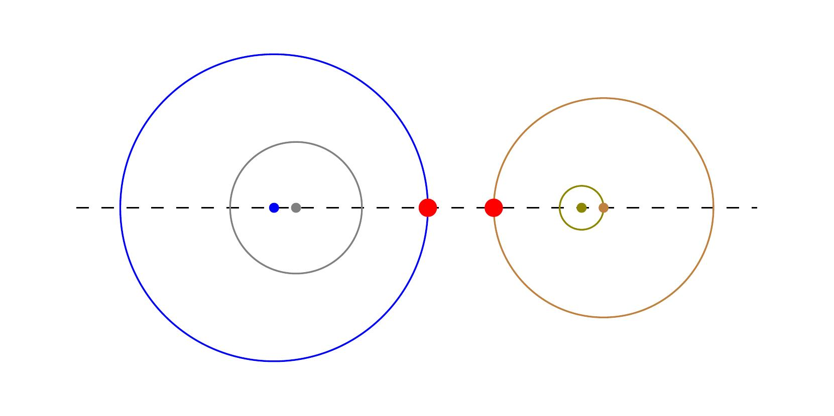 一个满足上述所有条件的布局称为可行布局。对于一个可行布局 $\mathcal{A}$,定义其质量 $d(\mathcal{A})$ 为任意两个属于不同圆的点之间的最小距离。