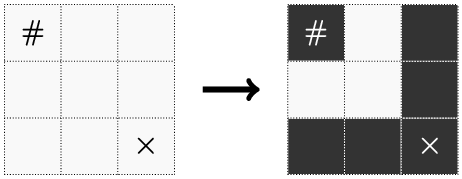- 如果第 $j$ 列的字符为 '\#',则 $(i, j)$ 位置为必需格子;