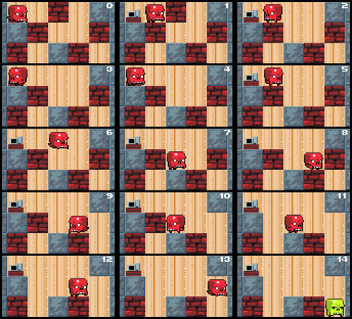 - 如果该格子是混凝土墙,Joe 只会改变注视方向为相反方向(混凝土能承受无数次撞击)。