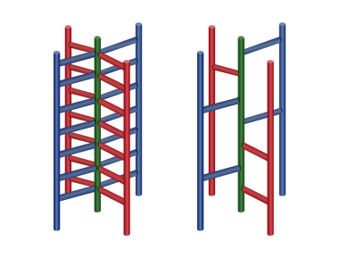 - 在高度 $1, 2, ..., n$ 处,正好有一根水平横杠从主杆上伸出。每根横杠都会向四个方向中的一个方向突出。