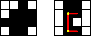 Consider an $ n×m $ grid. Initially all the cells of the grid are colored white. Lenny has painted some of the cells (at least one) black. We call a painted grid convex if one can walk from any black cell to any another black cell using a path of side-adjacent black cells changing his direction at most once during the path. In the figure below, the left grid is convex while the right one is not convex, because there exist two cells which need more than one time to change direction in their path.
