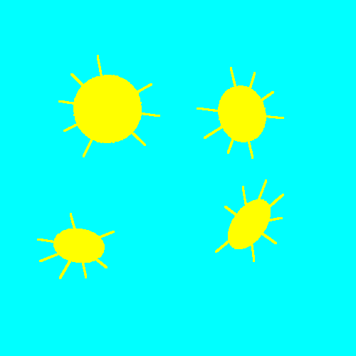 An image where all suns are circles.  An image where all suns are ellipses, their axes are parallel to the coordinate axes.  An image where all suns are rotated ellipses. It is guaranteed that: