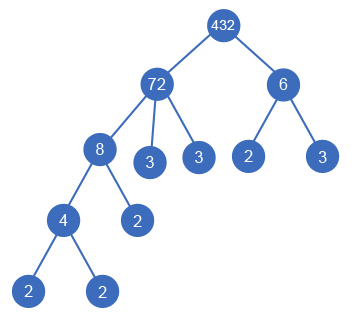 - 对于任意一个非叶子节点,其上写的数字等于其所有孩子节点上的数字之积。