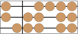 Soroban 由若干个算珠杆组成,每根杆上有五枚算珠。我们假定这些杆为横线。每根杆上最左边的一个算珠与其它算珠之间由一根“隔板”(reckoning bar)分隔。这个单独的算珠叫做 go-dama,其余四个叫做 ichi-dama。每根杆用于表示一个 $0$ 到 $9$ 的数字。通过以下简单的算法即可得到一个数字的值: