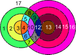 集合(K,z)是以点(z,0)为圆心,分别以1、2、………K 为半径画出的同心圆。在平面上画了一个(N,x)集和一个(M,y)集,你必须找出这些集合把平面分成了多少部分。