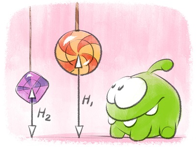 The hero of the Cut the Rope game is a little monster named Om Nom. He loves candies. And what a coincidence! He also is the hero of today's problem.