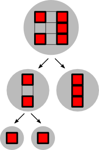 Meta-universe $ M={p_{1},p_{2},...,p_{k}} $ is a set of planets. Suppose there is an infinite row or column with following two properties: 1) it doesn't contain any planet $ p_{i} $ of meta-universe $ M $ on it; 2) there are planets of $ M $ located on both sides from this row or column. In this case we can turn the meta-universe $ M $ into two non-empty meta-universes $ M_{1} $ and $ M_{2} $ containing planets that are located on respective sides of this row or column.