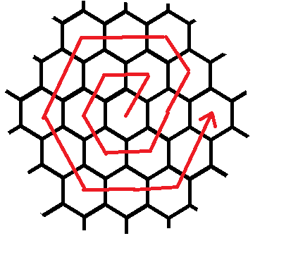 Ayrat 正在寻找完美的代码。他决定从一个用六边形铺成的无限平面开始搜索。为了方便,题目引入了坐标系统,具体如图所示,可以看到每个六边形的坐标定义方式: