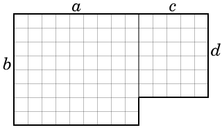 有一个 $a \times b$ 和一个 $c \times d$ 的矩形 $(b \neq d\;)$ ,其中长度为 $a$ 和 $c$ 的边共线,如图所示: