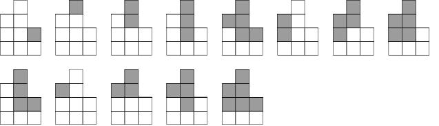 第二个样例的所有可能操作如下(图中灰色部分为被切掉的部分):