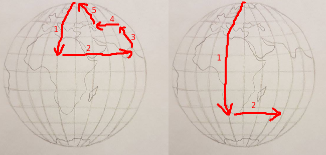下图展示了 Limak 的前两组样例路线。第二组样例答案为 "NO",因为他没有在北极结束旅程。 ![](https://cdn.luogu.com.cn/upload/vjudge_pic/CF750B/9bb594fe352848bbba36035935a49c02ad65109a.png) 由 ChatGPT 5 翻译