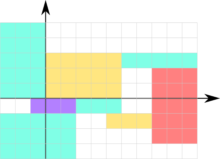 Timofey 收到的生日礼物之一是一本无限平面的彩色书。平面上有 $n$ 个边平行于坐标轴的矩形。所有矩形的边长都是奇数。矩形之间不能相交,但可以相互接触。