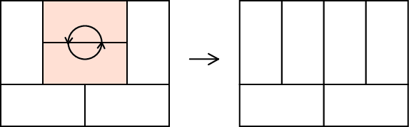 The workers decided that removing entire parquet and then laying it again is very difficult task, so they decided to make such an operation every hour: remove two tiles, which form a $ 2×2 $ square, rotate them 90 degrees and put them back on the same place.