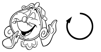 Note that Cogsworth's hour and minute mustache hands move evenly and continuously. Hands are moving independently, so when turning one hand the other hand remains standing still.