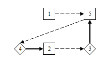 The picture corresponds to the first sample. On the picture rhomb stand for boys, squares stand for girls, arrows lead from a pupil to his/her best friend. Bold non-dashed arrows stand for pairs in the answer.