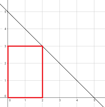 下图是样例 1 的对应图像。最优的矩形用红色标出,共有 $30$ 个香蕉。