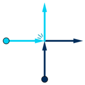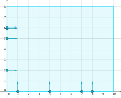 - Horizontal: stands at $ (0,y_{i}) $ , moves in positive $ x $ direction (rightwards).