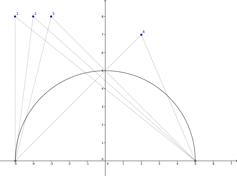 The planet is at the very edge of the universe, so its form is half of a circle. Its radius is $ r $ , the ends of its diameter are points $ A $ and $ B $ . The line $ AB $ is the edge of the universe, so one of the half-planes contains nothing, neither the planet, nor RCC satellites, nor anything else. Let us introduce coordinates in the following way: the origin is at the center of $ AB $ segment, $ OX $ axis coincides with line $ AB $ , the planet is completely in $ y>0 $ half-plane.