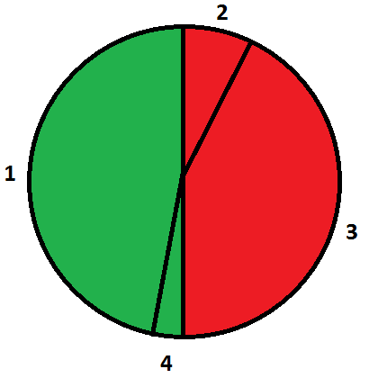 In third sample there is only one piece of pizza that can be taken by only one from Vasya and Petya. So the answer is $ |360-0|=360 $ .