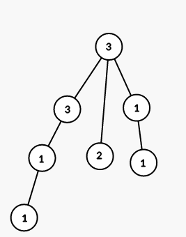 第一个样例对应的树见下图(数字为结点编号):