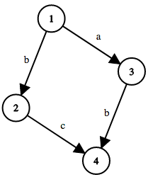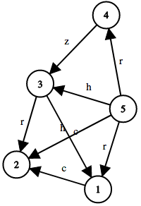 接下来的 $m$ 行,每行描述一条边,包含两个整数 $v$、$u$ 和一个小写英文字母 $c$,表示存在一条从 $v$ 到 $u$ 的有向边,边权为字符 $c$($1 \leq v,u \leq n$,$v \ne u$)。任意一对顶点之间最多有一条边。保证所给图为有向无环图。