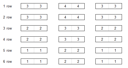 输入共 $6$ 行,每行描述一排课桌,从离黑板最近的那排开始。每行的格式如下: - 前两个字符(每个为 '\*' 或 '.')表示当前排左边课桌的两个座位; - 一个字符 '-' 表示过道; - 接着两个字符(每个为 '\*' 或 '.')表示当前排中间课桌的两个座位; - 一个字符 '-' 表示过道; - 最后两个字符(每个为 '\*' 或 '.')表示当前排右边课桌的两个座位。 因此,每行长度为 $8$。 保证至少有一个空位。