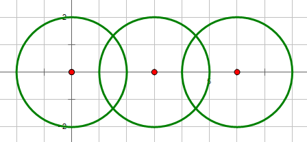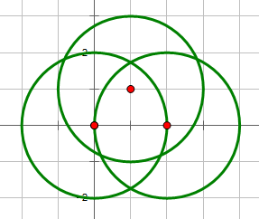 接下来的 $n$ 行,每行包含三个用空格分隔的整数 $x$、$y$ 和 $r$($-10 \leq x, y \leq 10$,$1 \leq r \leq 10$),描述一个圆,其圆心为 $(x, y)$,半径为 $r$。不存在两个圆的 $x$、$y$、$r$ 同时相同。