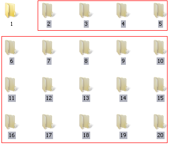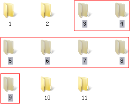 在这个测试中,我们可以第一次选择文件夹 3 和 4,第二次选择文件夹 5、6、7、8,第三次选择文件夹 9。