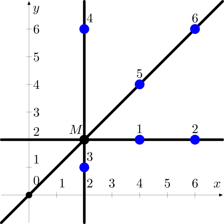 公元 18 年,著名天文学家 Philon the Berlander 出版了一本名为《论天空与宇宙》的书,在书中他描述了自己在夜空中观测到的不可思议的景象。他曾在晴朗的夜空中看到 $2n$ 颗星星和月亮。令人惊奇的是,可以将所有星星两两分组,使得每一对星星的连线都经过月亮的中心,并且所有这些连线都互不相同。Philon 仔细地将这种情况绘制在星空图上,并引入了坐标系。在绘制时,他注意到所有星星的中心和月亮的中心都是整数坐标点。由于 Philon 认为地球和月亮是平的,他采用了二维坐标系。天文学家选择的坐标系保证所有天体(包括月亮)的坐标绝对值都不超过 $10^{6}$。此外,没有两个天体(两颗星星或一颗星星与月亮)位于同一点。