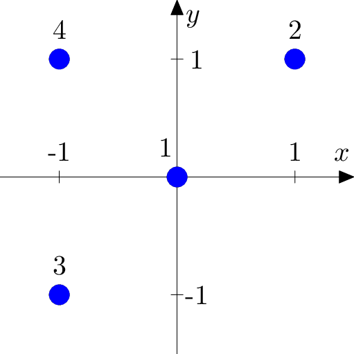 在第四个样例测试中,月亮中心不可能在点 $(1.5, 1.5)$,因为该点坐标不是整数。
