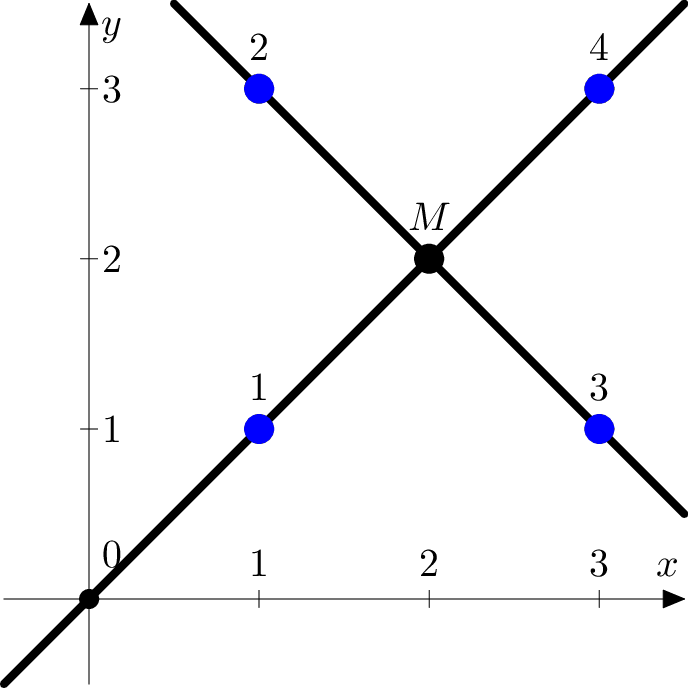 如果天文学家的描述不可能实现,即无法将所有点两两分组,使得所有通过这些点对的直线都是不同的、且都交于某一个整数坐标点,并且该交点不与任何星星中心重合,则输出一行 "No"(不带引号)。