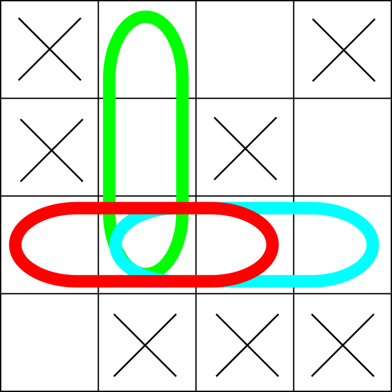 现在有一个 $n \times n$ 的棋盘。棋盘上应恰好放置一艘 $k$ 格长的战舰(即“$k$ 格舰”),该战舰可以水平或垂直放置。然而,Arkady 并不知道它的具体位置。对于每个格子,Arkady 只知道它是否一定为空,或者可能包含战舰的一部分。